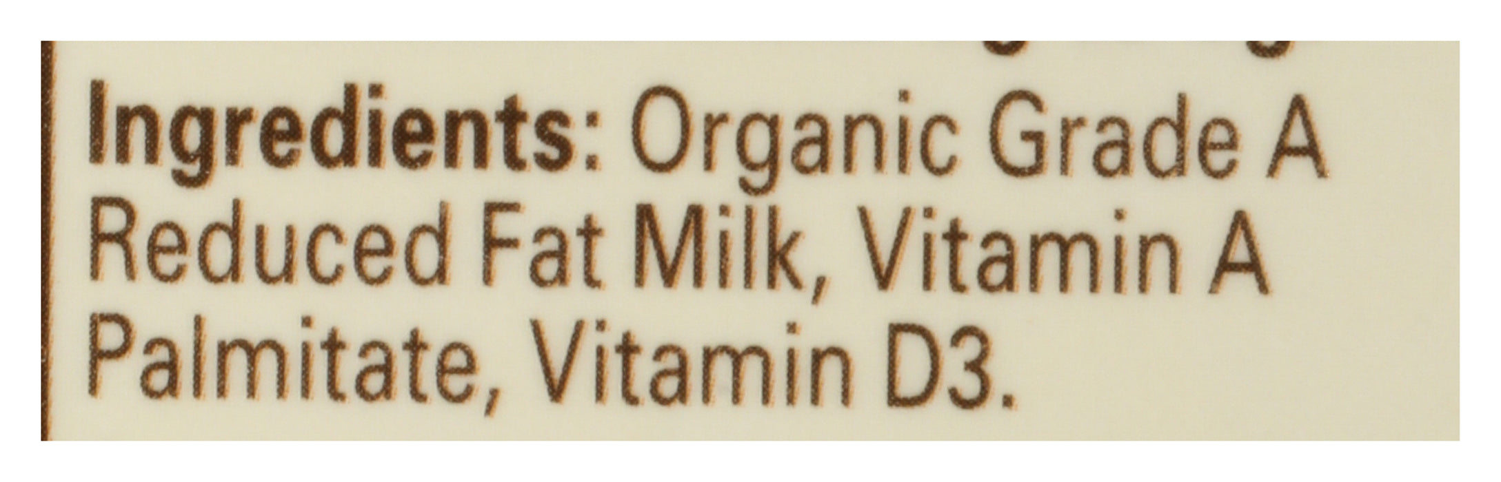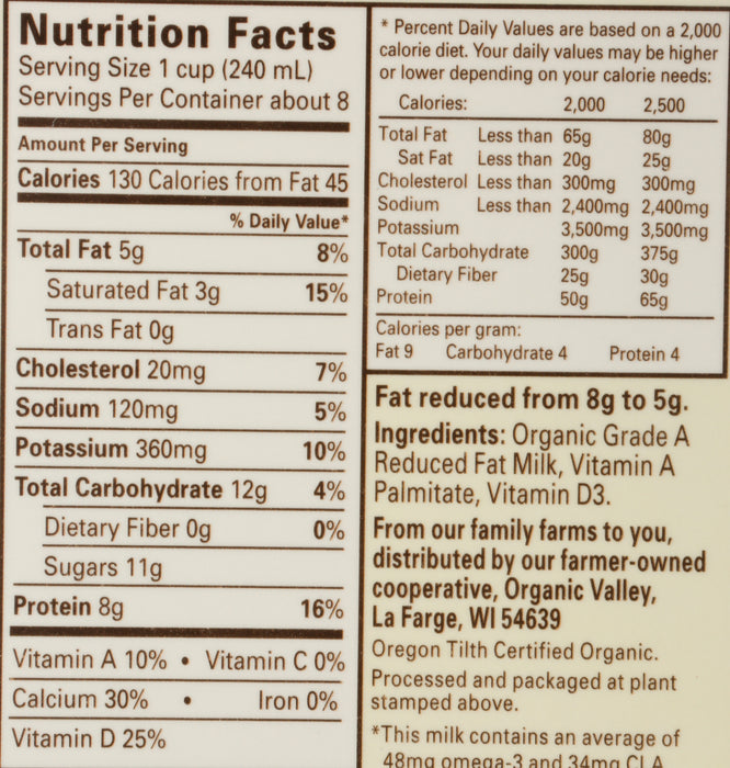 - One 0.5 gal. gable top of Organic Valley Reduced Fat Milk, 2% Milk Fat.