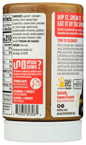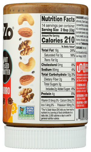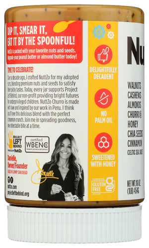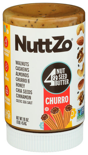 NuttZo Churro 4-Nut And Seed Butter comes with a delicious blend of rich walnuts, cashews, almonds, churro chips, honey, chia seeds, cinnamon, and celtic sea salt a sweet and spiced celebration in every spoonful.