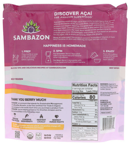 Sambazon Smoothie Pack Acai Berry + Guarana 14.1 oz