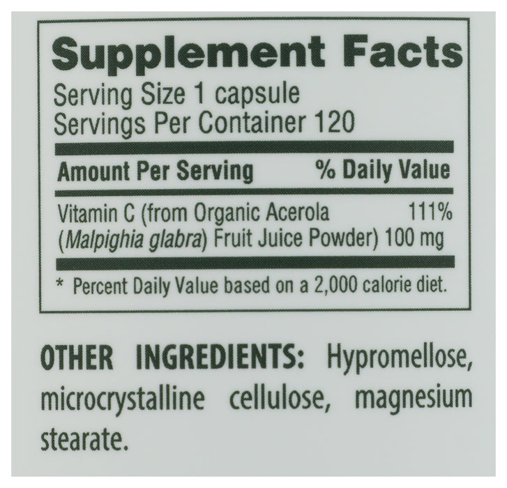 Acerola Natural Vitamin C, V, GF, 120 vcaps