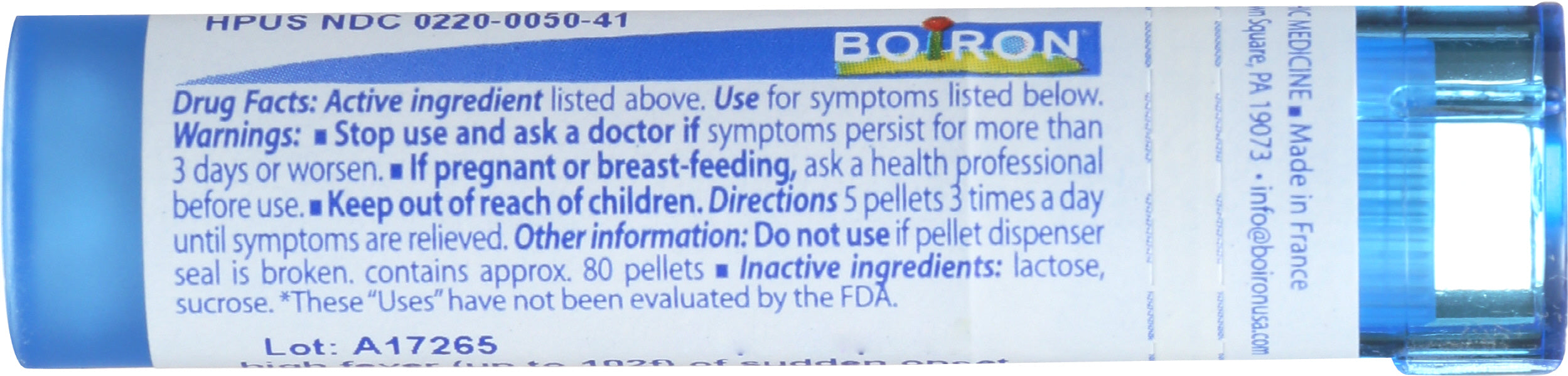 Boiron Aconitum Napellus Homeopathic Medicine may provide relief for adults and children who have a sudden onset of high fever of up to 102 degrees along with dry skin. Adults and children 2 years of age and older should dissolve five pellets under the tongue up to three times per day for optimal results. this 80 count tube has a twist-off cap for safety and to maintain purity. *