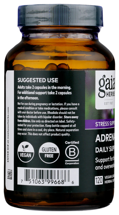 Gaia Herbs Adrenal Health Daily Support Dietary Supplement, 120 Capsules