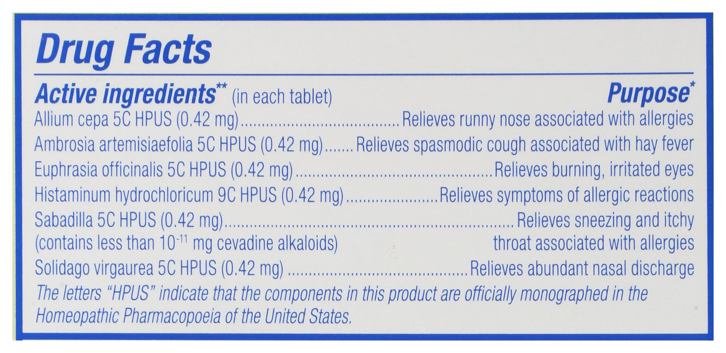 - Homeopathic medicine year-round allergy relief, for ages 2 & up, non-drowsy claims based on traditional homeopathic practice, not accepted medical evidence.