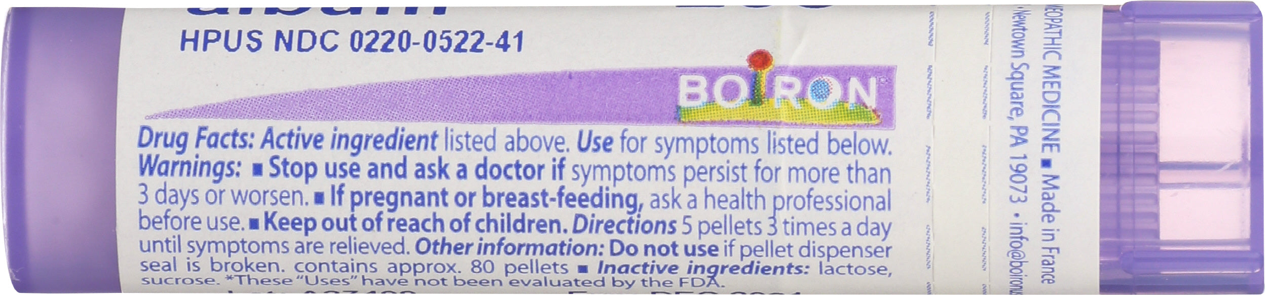 Boiron Arsenicum Album 200ck Homeopathic Medicine is designed to help relieve symptoms of food poisoning. We use a korsakovian dilution method to homeopathically dilute this formula 200 times at a rate of one part of the previous dilution to 100 parts of the solvent. Take five Pellets three times daily for up to three days, and consult with a physician if symptoms persist or get worse. This dispenser tube contains approximately 80 pellets of Boiron Srsenicum Slbum 200ck Homeopathic Medicine. *
