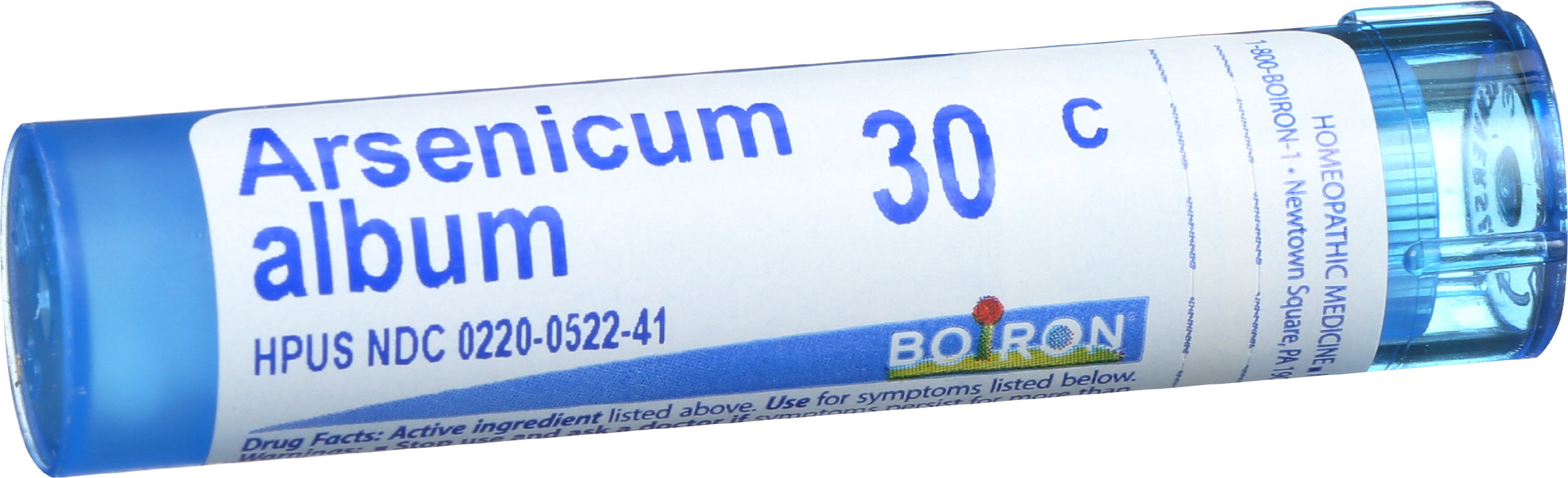 Boiron Arsenicum Album 30c Homeopathic Medicine helps settle your stomach and ease your digestion. Thought to relieve the symptoms of food poisoning, this remedy offers quick relief with a dose of five pellets that dissolve under your tongue. This tube contains approximately 80 pellets sealed in a plastic bottle with a twist cap for convenient measurement and dosage. *