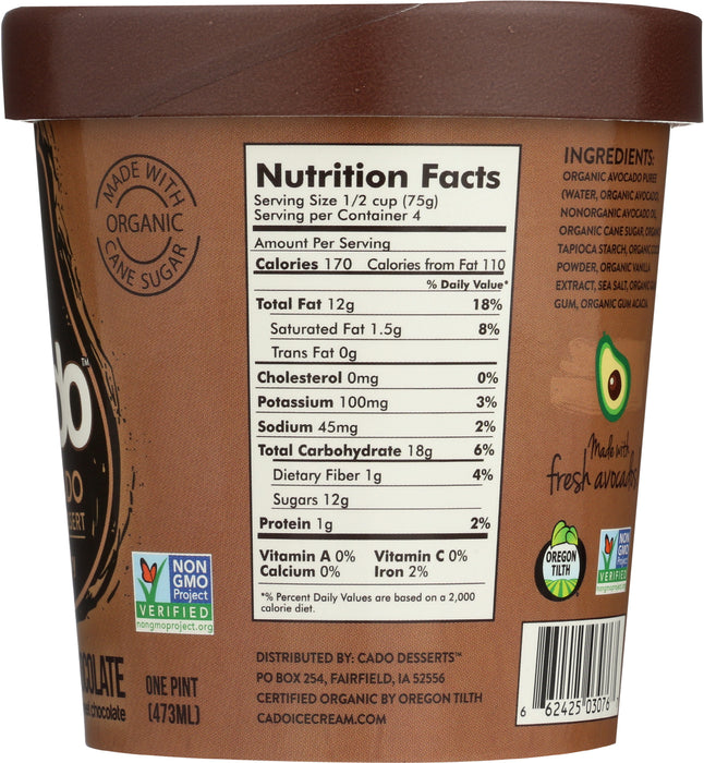 Cado Avocado Non-dairy Frozen Dessert, Deep Dark Chocolate, 1 Pt.