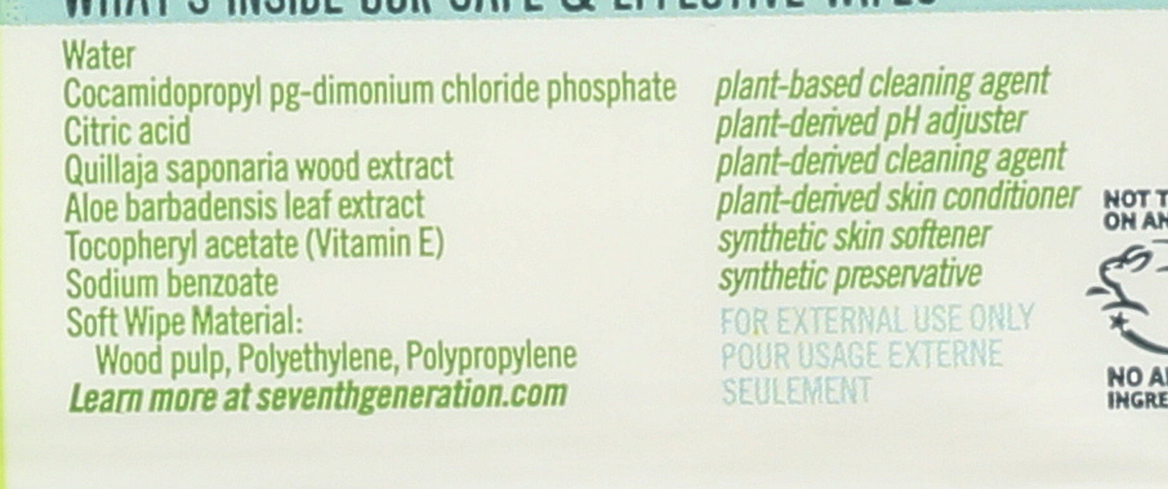Seventh Generation Baby Wipes, are a hypoallergenic personal care product. This container of 64 free and clear wipes is free from phenoxyethanol, as well as alcohol, fragrances or parabens. These baby wipes are made with aloe barbadensis leaf extract plant-derived skin conditioner and a soft wipe material made from wood pulp, polyethylene and polypropylene. This is also a cruelty free product.
