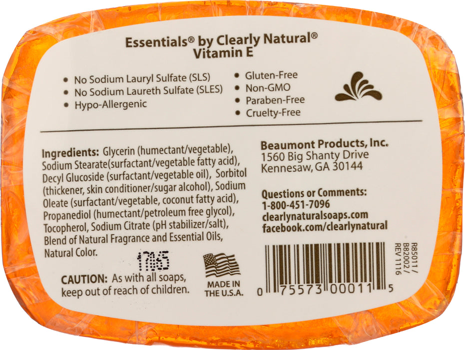 Clearly Natural Essentials Bar Soap, Vitamin E, 4 Oz.