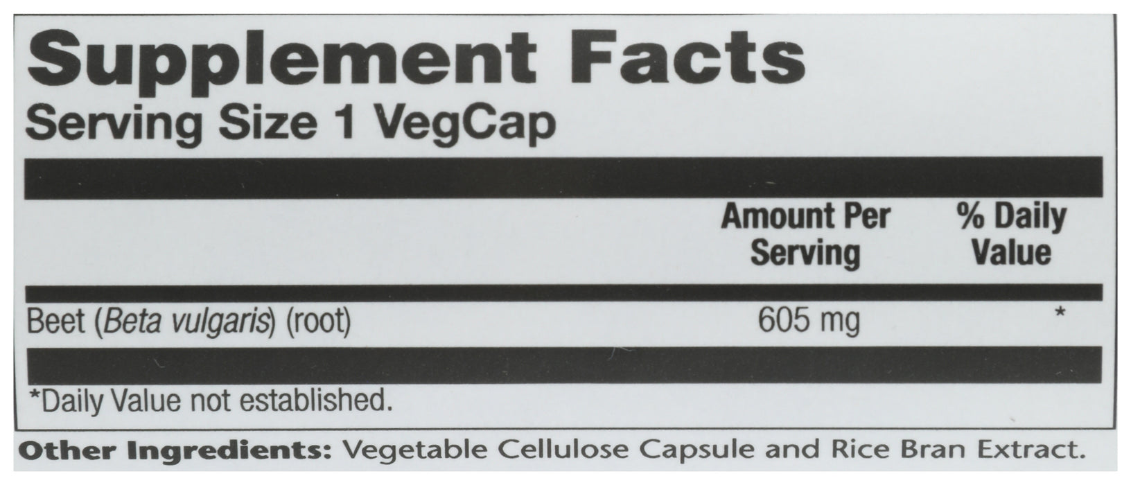 - One 100 vegcap bottle of Beet Dietary Supplement.
