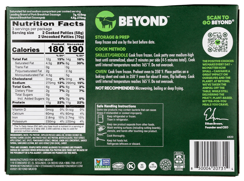 Spicy Beyond Breakfast Sausage Patties, Plant Based, 7.4 oz
