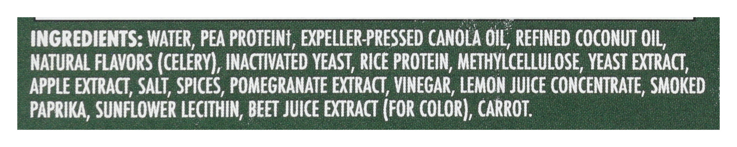 - Plant based protein, kosher, no gluten, no soy, no GMOS.
