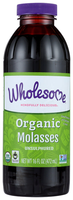 Wholesome Organic Unsulphured Molasses is made from certified non-GMO natural ingredients. this Molasses is a certified fair trade product of paraguay. We make our organic blackstrap molasses using evaporated pure organic cane sugar. Wholesome Molasses is naturally gluten-free and vegan. This bottle holds 16 fl. oz. of Molasses.
