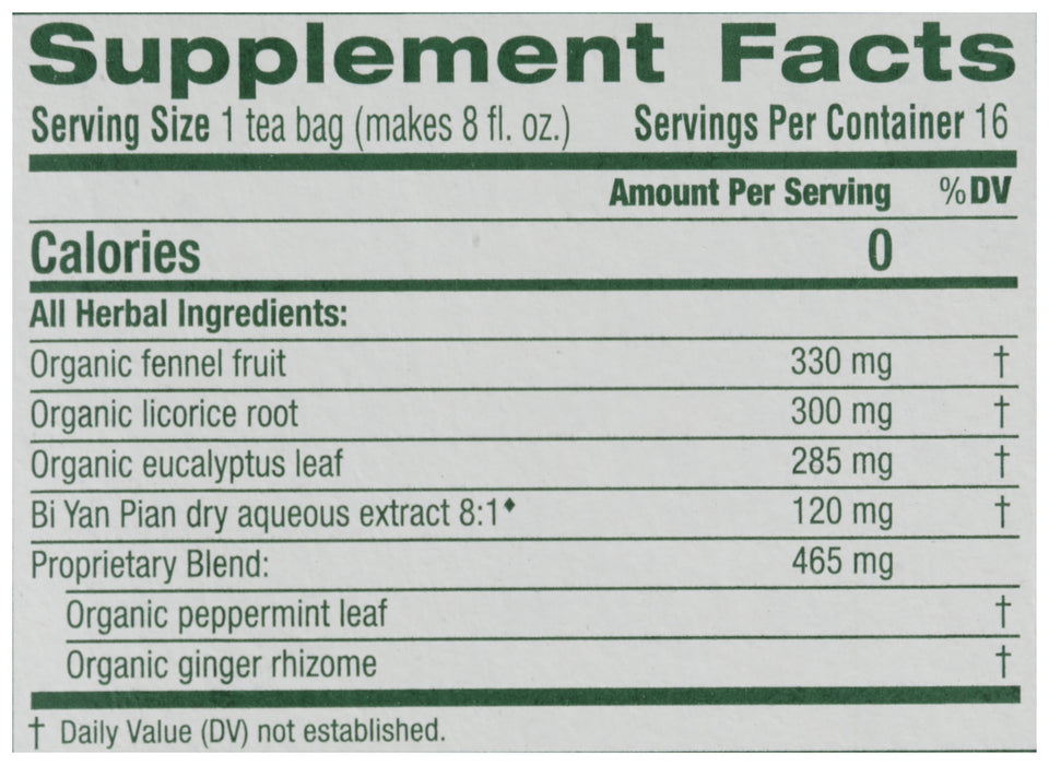 - One box of 16 wrapped seasonal breathe easy tea bags.