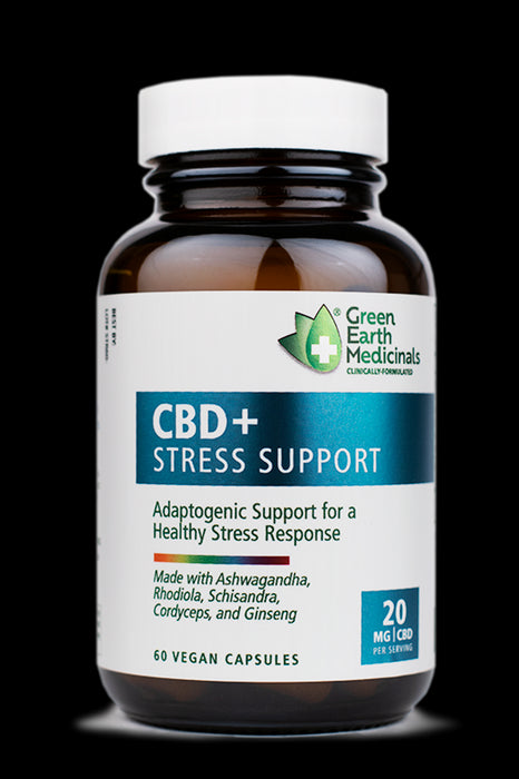 Green Earth Medicinals CBD + Stress Support the function of the endocannabinoid system, which balances many of our body systems and our perception of threat. Adaptogenic herbs help by focusing the endocannabinoid system towards nourishing and strengthening the endocrine system to support a healthy stress response.