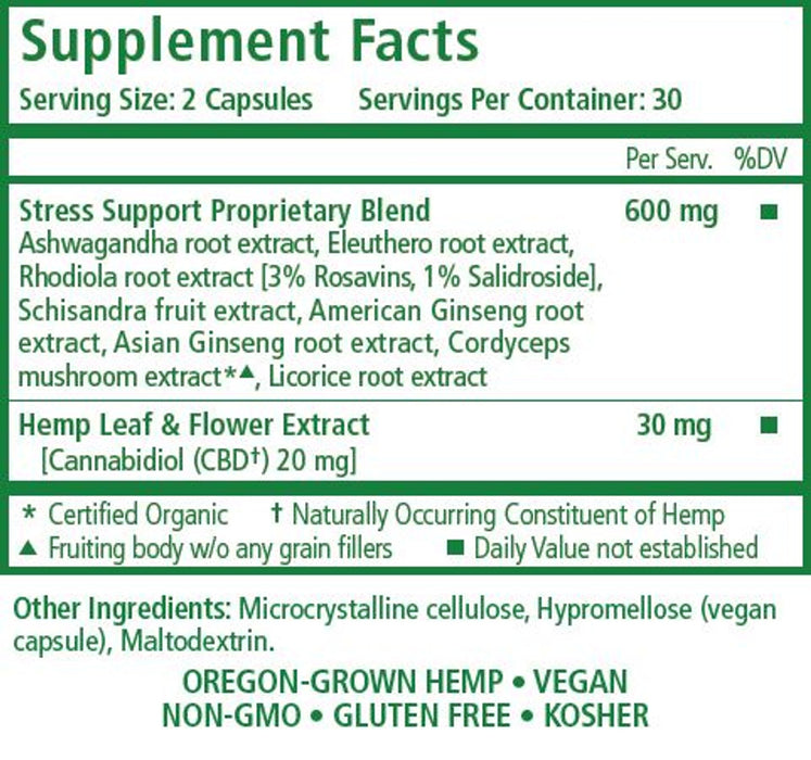 Green Earth Medicinals CBD + Stress Support 20 mg, 60 vcap