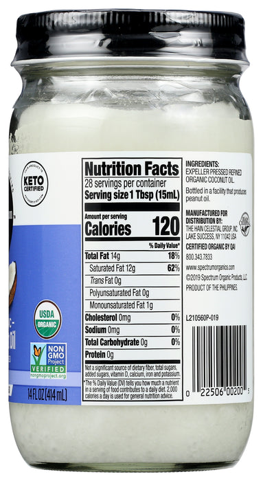 Spectrum Coconut Oil Refined Medium Heat 14 Floz