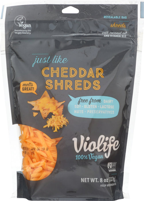 Violife Just Like Cheddar Shreds indulge, thanks to 100% dairy free and vegan violife just like cheddar shreds. Violife’s just like cheddar shreds melt, stretch, pull, and give you all that great cheesy deliciousness you crave. Whether you’re lactose-intolerant, vegan, or looking for something new, there’s no more holding your taste buds back from all of life’s cheesiest moments.