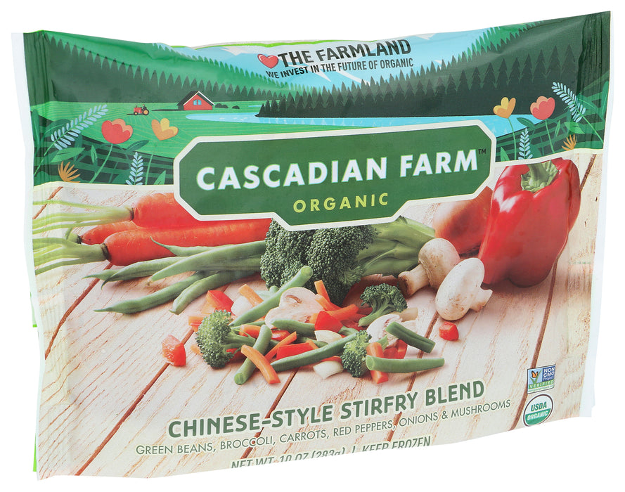 Cascadian Farm Frozen Stir-Fry Blend is a convenient and nutritious addition to a variety of recipes. Containing only 100% organic broccoli, carrots, onions, red bell peppers and mushrooms cascadian farm frozen stir-fry blend is free of unnatural and unnecessary additives. This product is organic and non-GMO. Each bag of Cascadian Farm Frozen Stir-Fry Blend weighs 10 oz. With 3.5 servings per bag and 20 calories per serving.