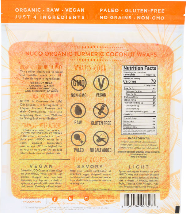 Nuco Organic Turmeric Coconut Wraps, 5 Count