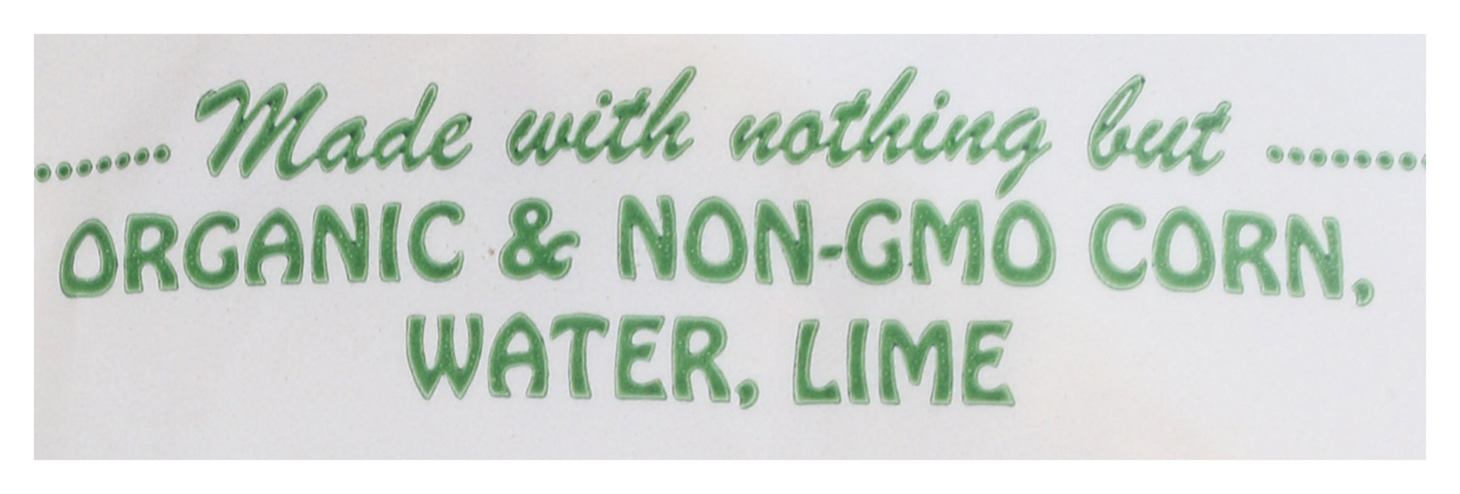 - Made with nothing but organic & non-gmo corn, water, lime.