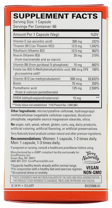 Stress can rob us of the very nutrients that help us stay resilient and strong. Replenishing them with the best forms helps you keep cortisol levels and daily life-in balance. Premium bioactive B vitamins support daily energy, healthy metabolism, healthy blood sugar levels, and positive mood. The B6, B12,and Folate in this formula don't require conversion by the liver as common forms do, so they can get to work right away. The adrenal glands require vitamin C to function properly, so it is critical for supporting healthy cortisol levels. Supplemental DHEA can help maintain a healthy balance and function of DHEA and cortisol hormones. The DHEA cortisol ratio is critical for daily energy, vitality and tolerance to stress.*