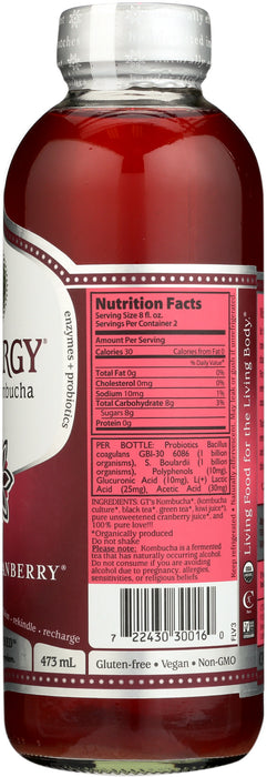- One 16.2 fl oz bottle GT’s Enlightened Synergy, Cosmic Cranberry.
