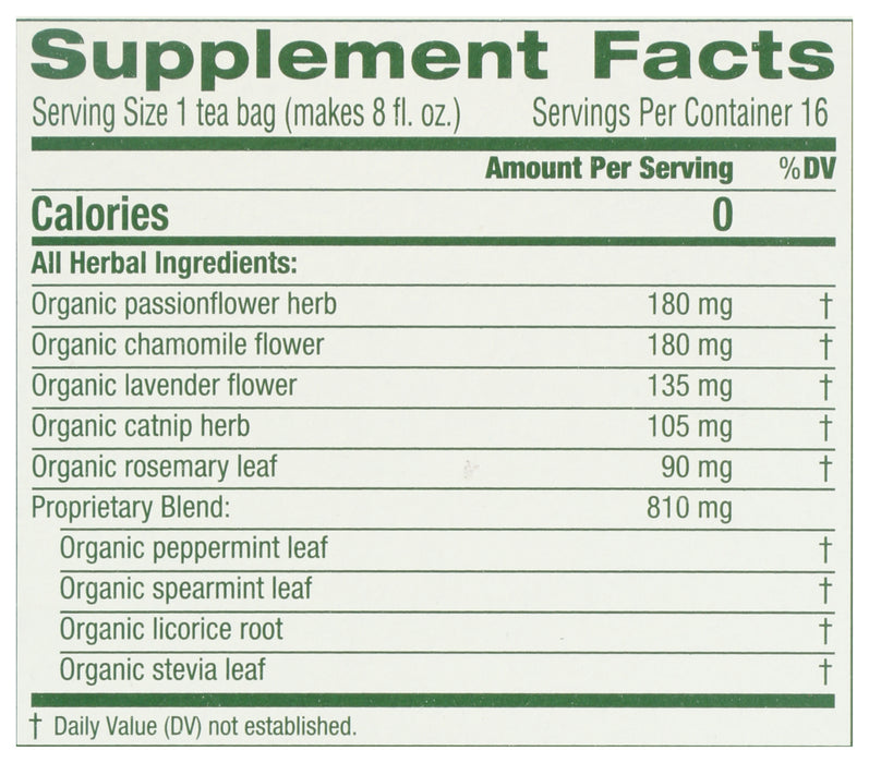 Traditional Medicinals Cup of Calm Bagged Tea is made with certified USDA organic and verified non-GMO ingredients. Each box contains 16 Tea Bags of our naturally caffeine free herbal tea. Ingredients like organic passionflower herb, chamomile flower and english lavender flower calm the nervous system.