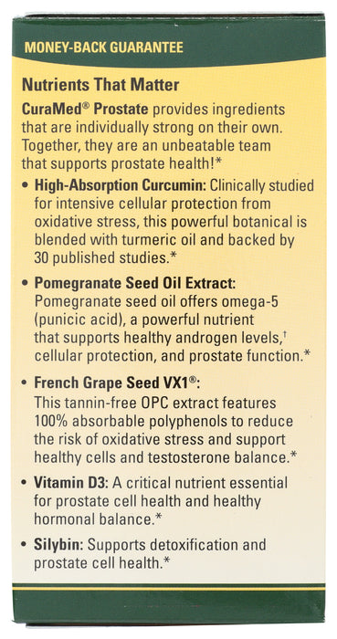 Prostate health support should be a focus of every man’s daily supplement regimen. For the ultimate in prostate support, CuraMed Prostate should be the first choice. This formula supports three major aspects of men’s health cellular protection from oxidative stress and damage, free radical defense, and healthy male hormone balance for powerful support of prostate function.*