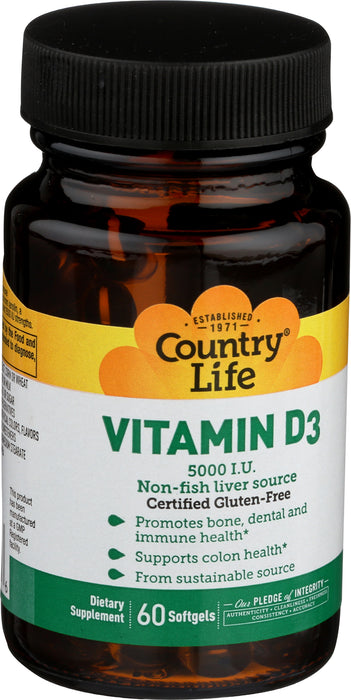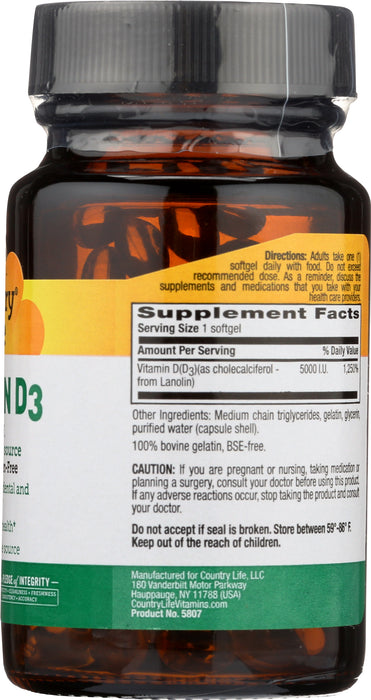 Country Life Vitamin D3 5000 I.U. Dietary Supplement, 60 Softgels