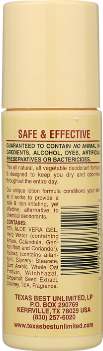 Alvera All Natural Roll-On Deodorant is free of animal ingredients, alcohol and dyes. We formulate our roll-on deodorant to help keep you dry and free of odors during your busy day. Our deodorant is 75% aloe vera gel to help protect your skin against irritation. Each 3 fl oz Roll-On Deodorant is free of artificial preservative and bactericides.