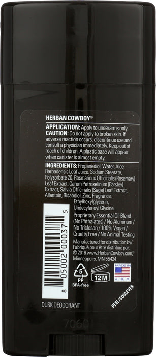 - One 2.8 oz tube Herban Cowboy Deodorant Stick, Dusk.