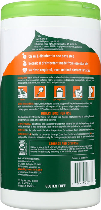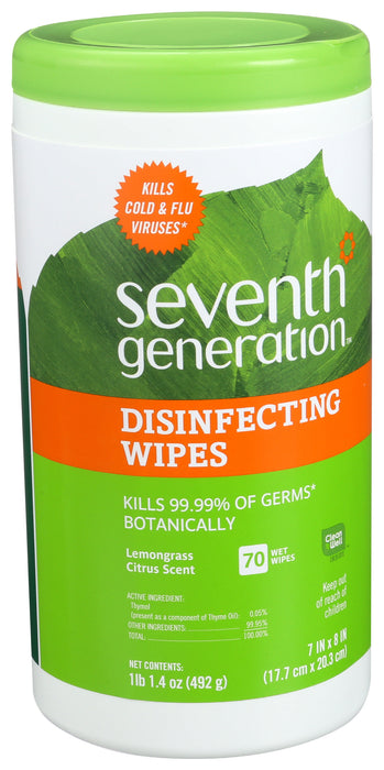 Seventh Generation Disinfecting Wipes, Multi Surface, 70 Each