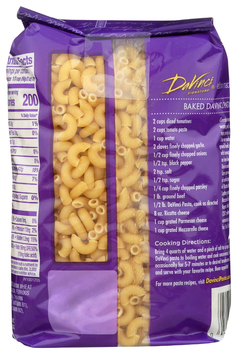 Davinci Pasta, Elbow Macaroni Short Cuts is delicious pasta you can feel good about serving to your family. Davinci is authentic italian pasta. Unlike ordinary pastas, da vinci is made in italy and imported. This pasta is created with the finest, 100% durum wheat semolina and uses the traditional time honored process of warm air drying for the consistent al dente texture of classic italian pasta. Your culinary creations will taste like they came from a local trattoria in italy. Drain and add to almost any recipe.
