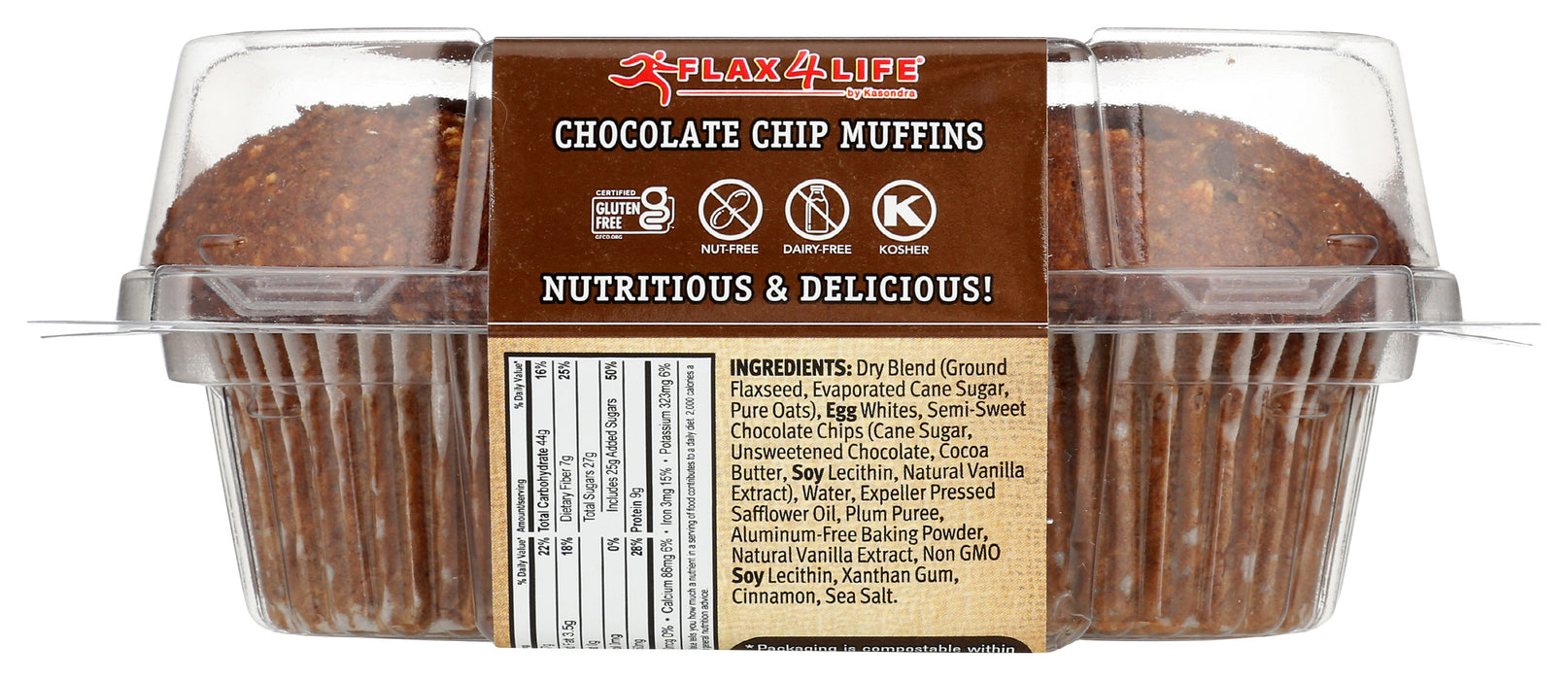 Flax4life Chocolate Chip Muffins Gluten-free, Dairy-free & Nut-free is a treat yourself to a nutritious & delicious Chocolate Chip Muffin. This hearty and flavorful muffin is packed full of rich dark chocolate chips. Each scrumptious muffin is loaded.