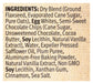 - Kosher, gluten free, penut free, dairy free, soy free.