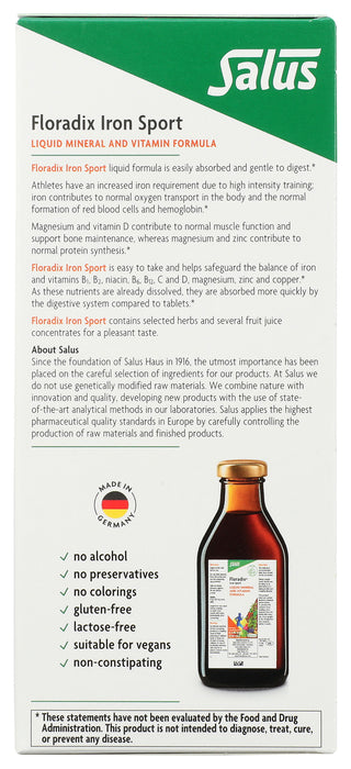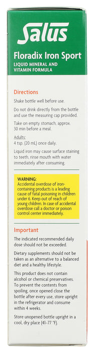 Floradix Iron Sport Liquid Mineral and Vitamins, Vegan, 8.5 fl oz