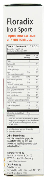 Floradix Iron Sport Liquid Mineral & Vitamin Formula, 8.5 Floz