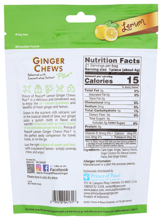 Prince Of Peace Ginger Chews Plus+ Lemon 3 oz