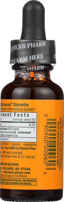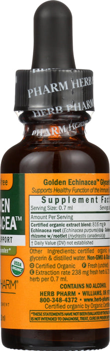 - One 1 fl oz of Herb Pharm Alcohol-free Golden Echinacea Liquid Herbal Supplement.