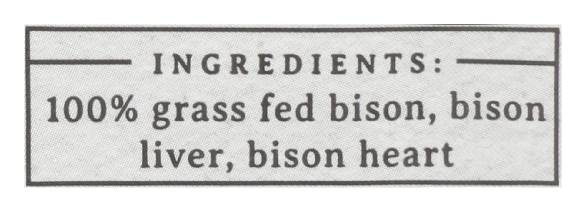 - Ancestral Blend Ground Bison, bison liver, bison heart.