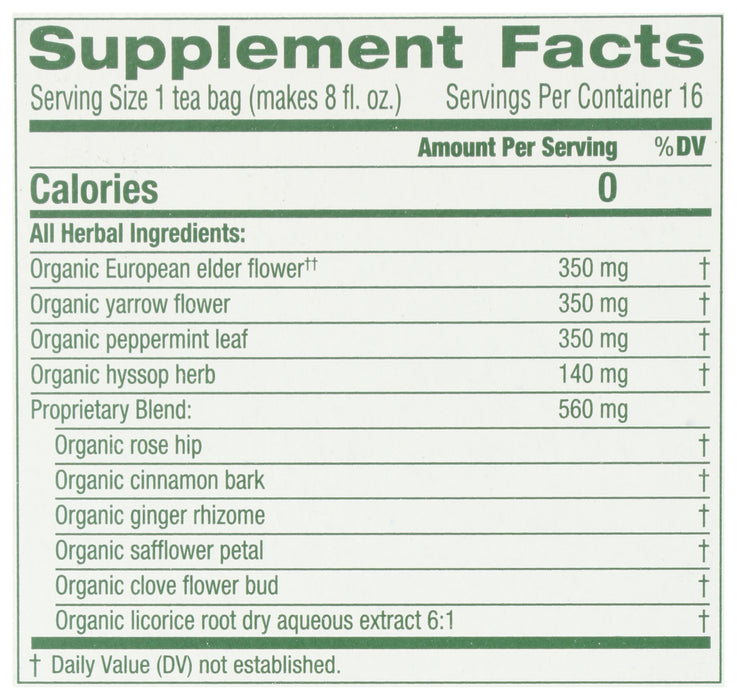 Herbal Cold Care Tea, Elderflower Spice, Org, 16 tbag