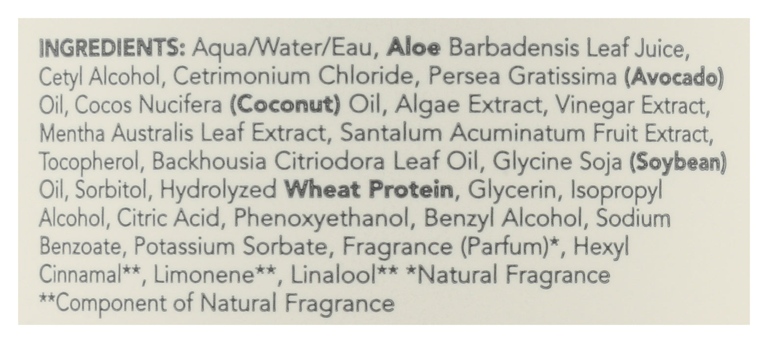 - Conditioner nourishes hair with a blend of avocado oil, wheat protein & sustainably sourced algae for shinier, softer and smoother hair.