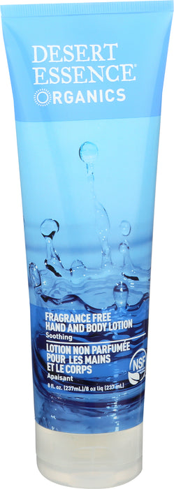 Desert Essence Organics Fragrance Free Soothing Hand and Body Lotion, 8 Fl. Oz.