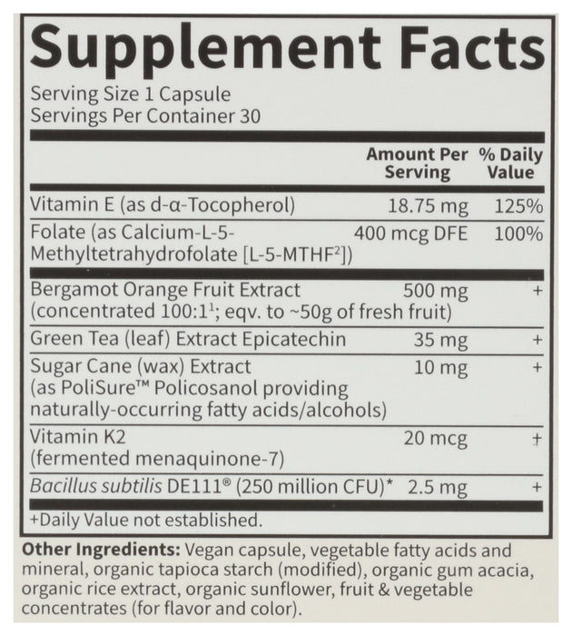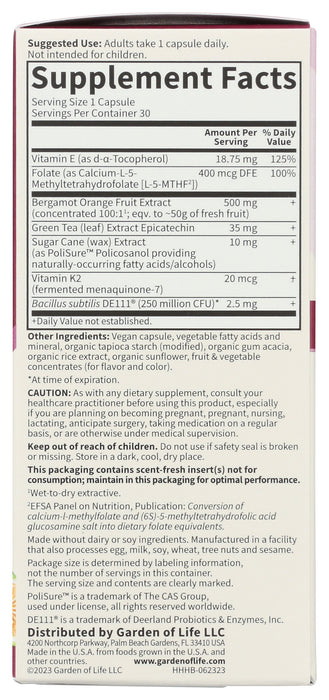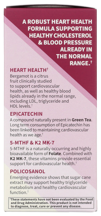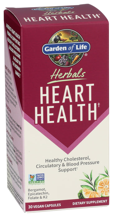 Garden of Life Herbals Heart Health is a robust herbal formula with a purpose. Containing clinically studied ingredients to support healthy cholesterol, circulatory, and blood pressure health, it’s the rooted in nature ingredients that will make your heart jump for joy Heart Health contains 500 mg of Bergamot extract ( traditionally used in the Mediterranean diet ), to support heart health, the circulatory system, and healthy cholesterol levels already in the normal range. We've also added 35 mg of epicatechin a compound naturally found in green tea which has been linked to maintaining cardiovascular health as we age, and 400 MCG of highly bioavailable folate along with 20 MCG of vitamin K2 as MK-7 to provide essential cardiovascular support. And finally, we've included clinically studied PoliSure polycosanol, a natural extract which emerging evidence has shown may support healthy triglyceride metabolism and healthy cardiovascular function. All of this heart-healthy goodness is wrapped up in an easy-to-swallow, once-daily, citrus-essenced, capsule. A comprehensive heart formula with multiple clinically studied ingredients for overall heart health. Designed with clinically validated herbals and targeted nutrients to address various aspects of heart health.
