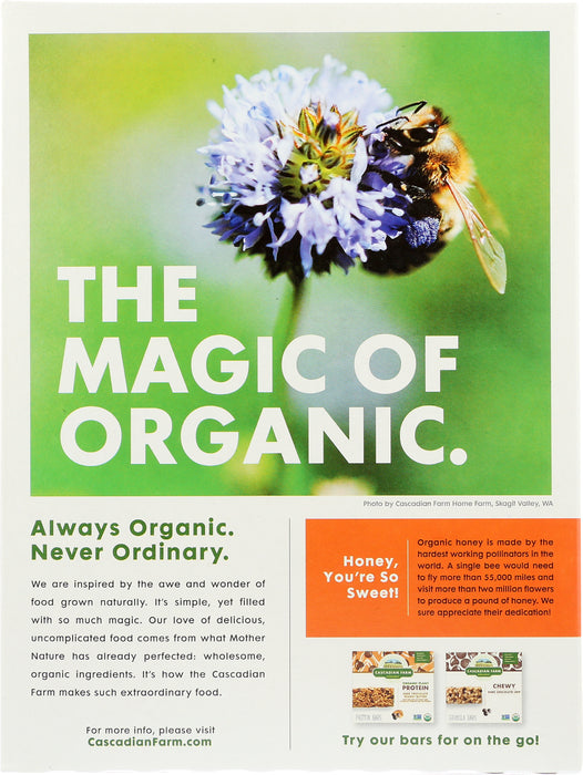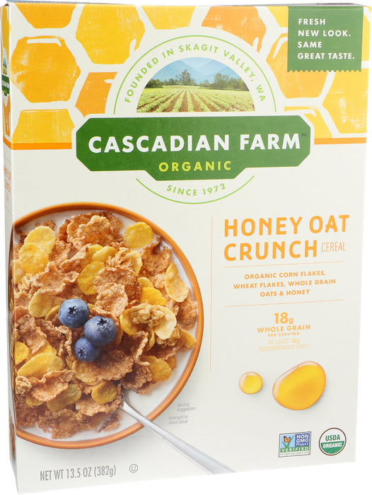 Cascadian Farm Organic Honey Oat Crunch is revolutionizing breakfast with a perfect medley of grains and honey for a healthy but tasty cereal. Cascadian farm uses USDA organic, non-GMO ingredients with no artificial flavors or colors. Real food and real taste. Cornflakes, wheat flakes and whole grain oats meet honey for a taste that will bring you back for seconds. Whether it’s midnight or the first meal of the day, this blend will satisfy your craving. Includes one 13.5 oz box Cascadian farm is a leader in organic foods. We use no synthetic pesticides and are a bee-friendly company.