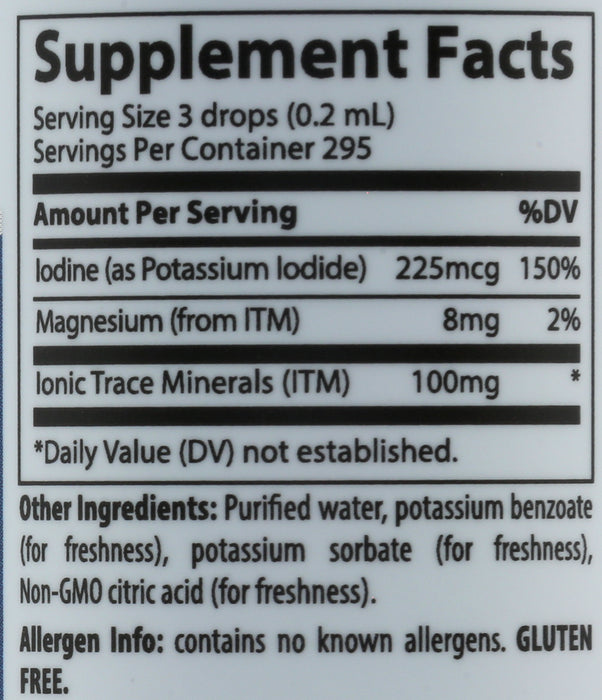 Trace Minerals Liquid Ionic Iodine From Potassium Iodide is a rich, concentrated liquid dietary supplement that provides 225mcg per serving of Iodine from Potassium Iodide. It may help support the healthy thyroid function, hormone production, central nervous system function, and immune function. *