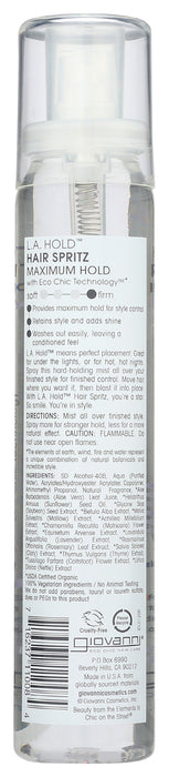 - One 5 fl. oz bottle of Giovanni Hair Spray Hold Hair Spray.