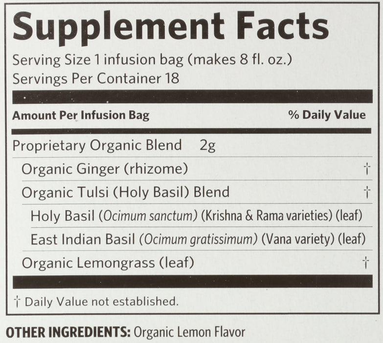 Lemon Ginger Tulsi Tea, Org, 18tbag