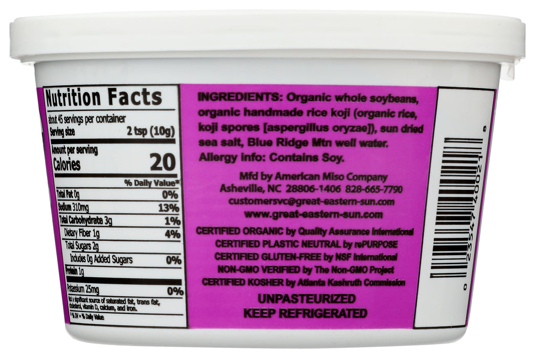 Miso Master Organic Mellow White Miso is a gluten-free, non-GMO, american-made premium light soy paste. Each 16 oz container contains about 45 two teaspoons servings. Our Miso is naturally aged using traditional japanese techniques, artisanal hand-crafted koji and domestic organic beans and grains.