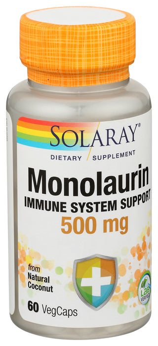 Solaray Monolaurin Dietary Supplement aim to support immune system health with 500 mg. of this powerful lauric acid per dose. our formula utilizes a natural coconut source to provide this nutrient found in coconut oil and breast milk with the intentions of enhancing the immune system daily. This bottle contains 60 Vegetable cellulose Capsules. *